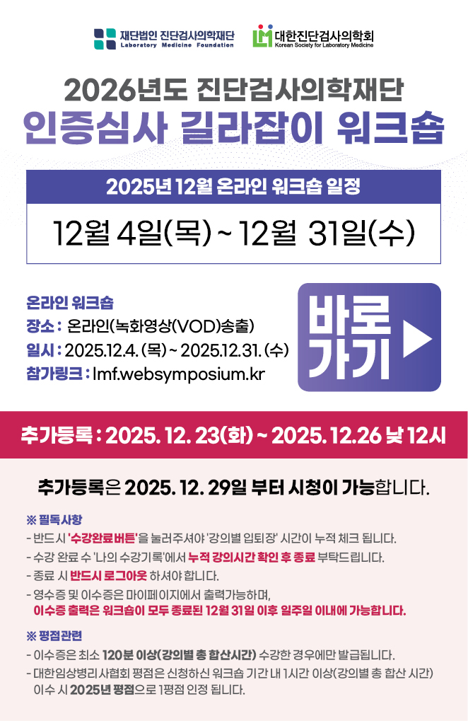 진단검사의학재단의 공지사항을 보실 수 있습니다.